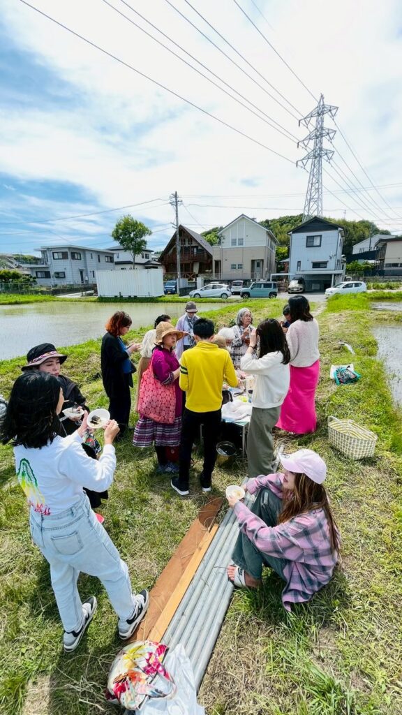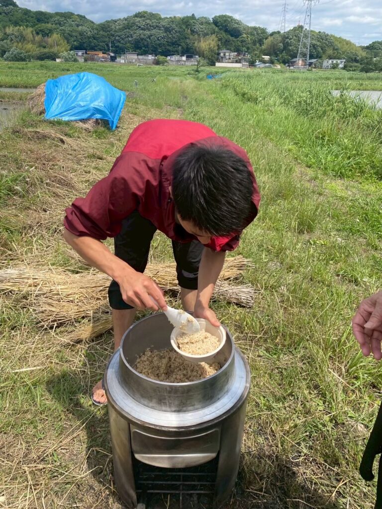 そんな言葉が次々と飛び出し、心から嬉しいひとときとなったのだ。田んぼの目の前で、羽釜ご飯を皆でいただく光景は、まるで江戸時代にタイムスリップしたような尊い体験です。