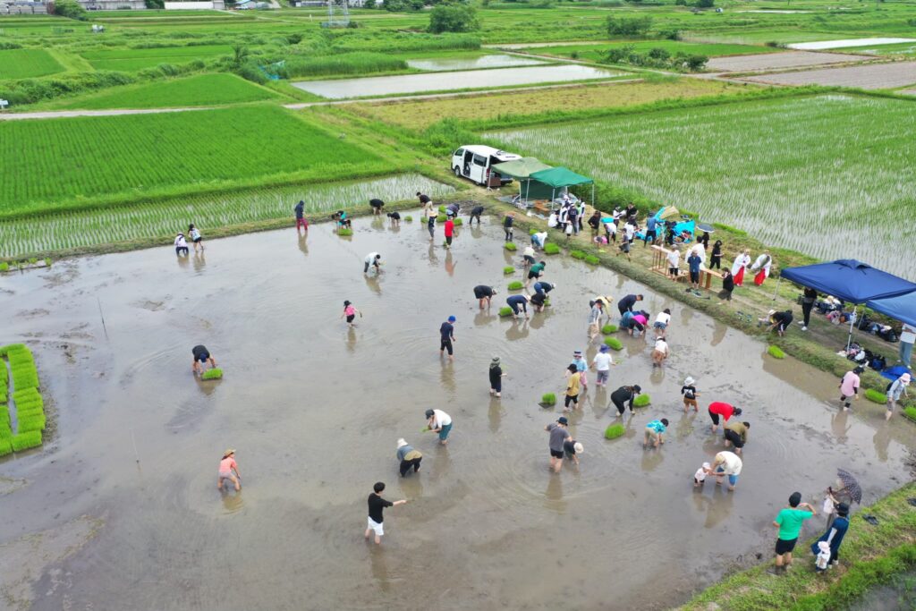 その場において、裸足で田んぼに入り泥の感触を楽しむ子どもたち、初めて田植えに挑む者、田んぼに初めて足を踏み入れる者、田んぼと共にそれぞれが笑顔あふれる姿は、まさに時代の転換期を象徴する風景であった。